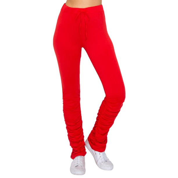 Glass Two Women S Stacked Pants Casual High Waisted Skinny Elastic Waist Stretch Ruched Leggings Sweatpants Joggers Gt3005 Red S Walmart Com